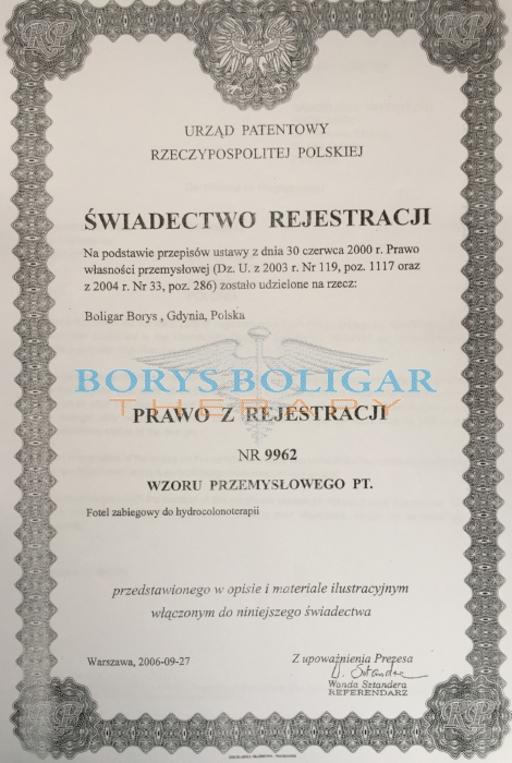 Cierpliwie przekonuję ludzi do tego, by nie bali się płukać jelita, zamienili słowo lewatywa na hydrokolonoterapia i uważnie obserwowali pozytywne skutki moich zabiegów. Chciałbym w tym miejscu zaznaczyć, że nie konkuruję z lekarzami stosującymi powszechnie znane metody leczenia, ja wspieram ich terapię moimi zabiegami. Pacjenci często pytają mnie, dlaczego nie stosuję skomplikowanych urządzeń do hydrokolonoterapii, a ja odpowiadam im, że wolę fotel, który opatentowałem, bo jest bezpieczny i niezawodny.